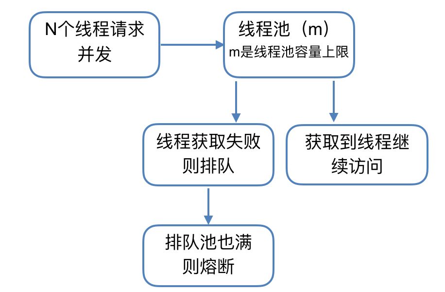 线程池隔离适用于第三方应用或者接口、并发量大的隔离;信号量隔离适用于内部应用或者中间件;并发需求不是很大的场景。