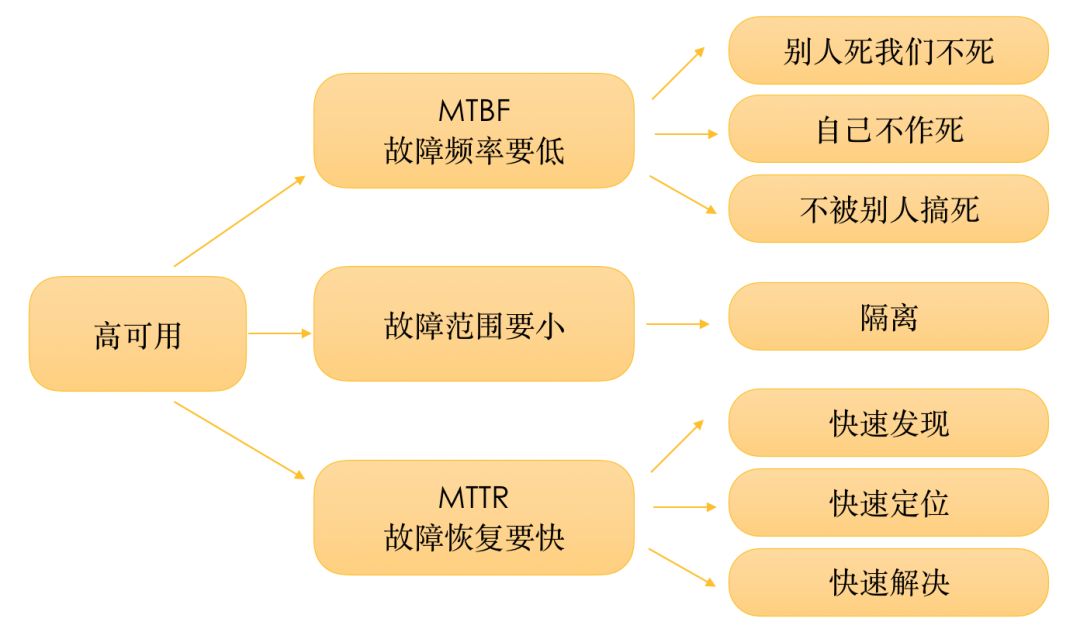 对于核心交易来说,可用性最好是无故障。在有故障的时候,判定影响的因素除了时间外,还有范围。将核心交易的可用性问题分解则为: