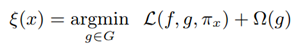 实现LIME的具体方法是:在实例x附近加干扰,得到一些与它近似的实例z,用训练出的模型f对这些z进行预测f(z),作为解释模型g的label。代入模型,优化下面公式中定义的目标函数。对于邻近x的z给予较高的权重π,对于较远的z给予较低的权重π。