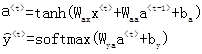RNN模型计算分为两步,第一步,计算第t个时间步的隐藏层a;第二步,计算t步的预测值y。
