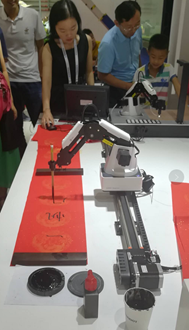 机械臂是机器人技术落地最早,也最成熟的领域,机械臂的观感和功能大同小异,主要应用于工业领域。近年来机械臂的功能已相对固定,针对自由度和路径研究都以优化为主。这次也看到一些新应用,大多是在机械臂的肢体末端加入新部件,实现更多应用。比如添加海绵用于擦洗,控制毛笔写字等等。写字由书写的程序操控,擦洗的力度和工作范围也需要额外的编程,以及加入一些传感器摄像头协同工作,主要还是针对细分领域的应用。