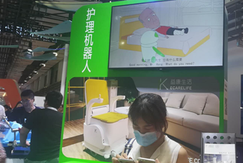机器人展厅可分为技术研究和解决方案两种风格。解决方案比如“护理机器人”是对轮椅功能的扩展,加入了帮助站立,踏板开关,还能折叠成一张小方凳,设计非常贴心。从功能角度看,主要是人通过操纵杆和按钮操作,从介绍视频中没看到更多的新技术的应用和算法的拓展,但还是挺实用的。