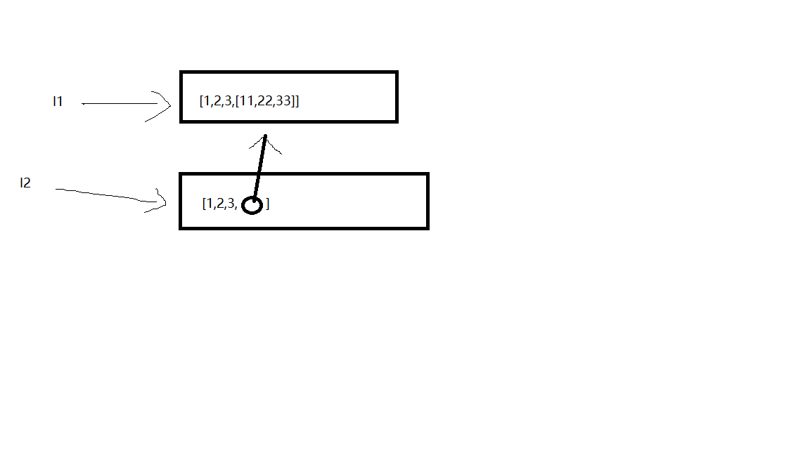 l1 = [1, 2, 3, ['aa', 'bb']] l2 = l1 l2[0]='aaa' l2[3][0]='bbb' print(l1) #['aaa', 2, 3, ['bbb', 'bb']] print(id(l1)==id(l2)) #True