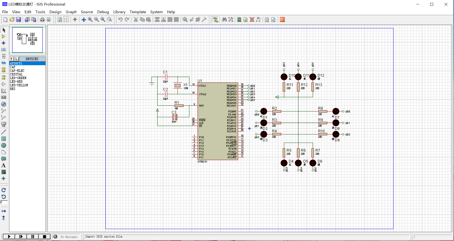 首先我们打开keil_proteus中调试交通信号灯的电路图