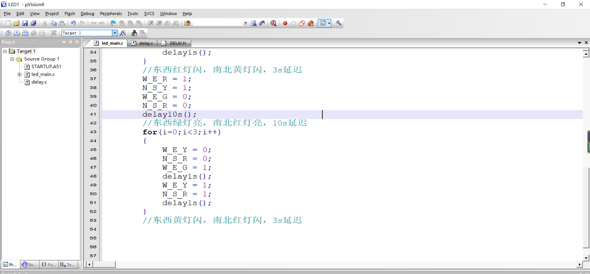 所以现在我们打开Keil uVision4开始编撰代码,编好的代码如下