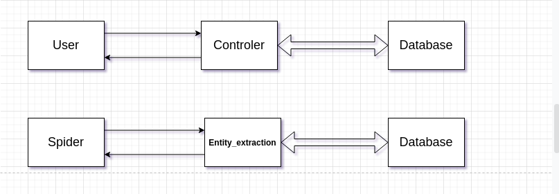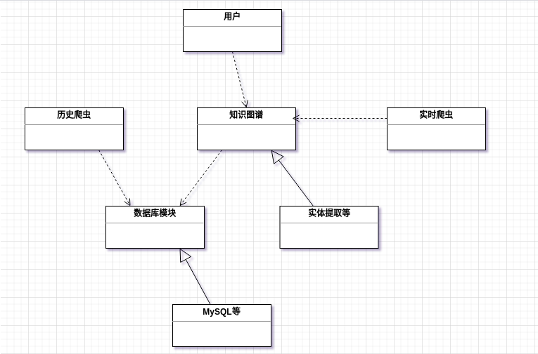 在本系统中,user调用Controler的函数,以获取返回值。同时,Spider调用Entity_extraction的函数,处理抓取的数据并将知识存入MySQL。