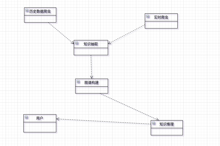 首先介绍一下此次的工程实践项目,通过抓取历史新闻数据,提取知识去构建知识图谱,并抓取当下的微博,基于构件好的知识图谱对新发生的事件去推理此事件可能产生的结果及影响,也提供历史的类似事件以供用户加以自己判断。每隔一段时间将近一段时间的新闻提取知识合并到知识图谱中。