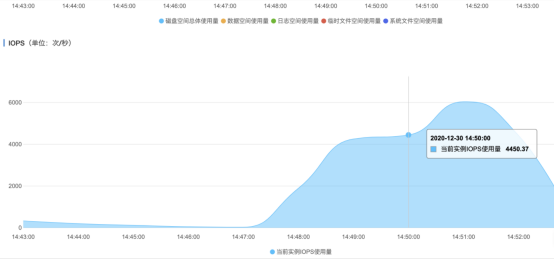在资源监控和引擎监控内可以查看实例的磁盘空间、IOPS、事务等情况。