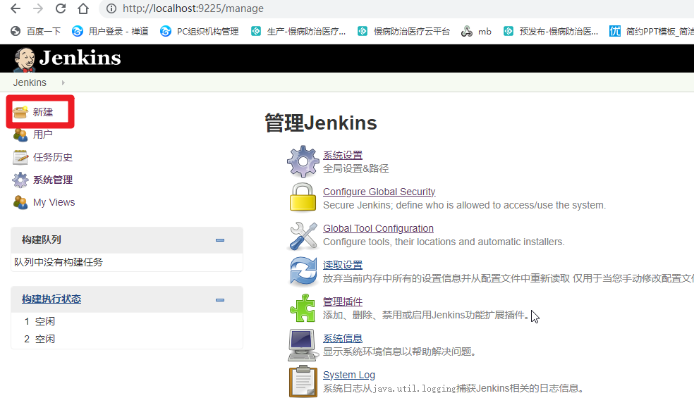 java -Dfile.encoding=UTF8 -jar D:\my_Auto_Test\jenkins.war --httpPort=9225,war包目录,端口号随便写(生成密码 管理员登录时使用)admin