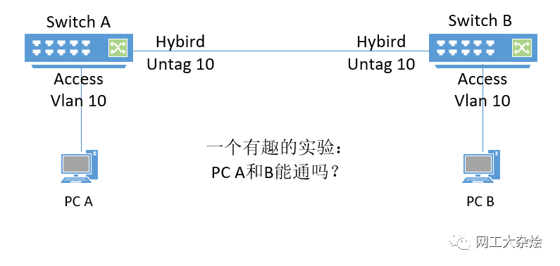 顾名思义,这是一种混合端口,是access和trunk两种端口的混合,既可以转发无vlan tag报文,也可以转发有vlan tag报文;在hybird端口上通常会配置tag vlan和untag vlan,对于tag vlan,其转发方式与trunk口相同,对于untag vlan,其转发方式与access口相同;