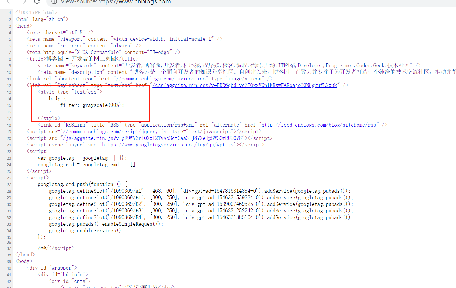<style type="text/css"> body { filter: grayscale(90%); } </style>