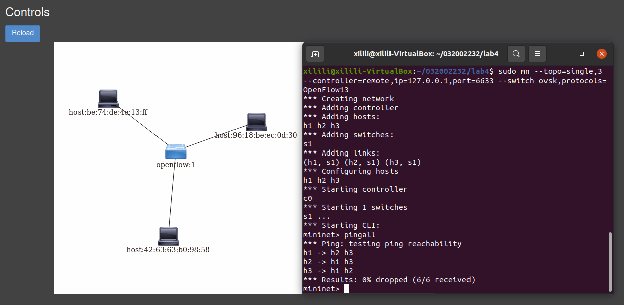 1、 利用Mininet平台搭建下图所示网络拓扑,并连接OpenDaylight控制器;