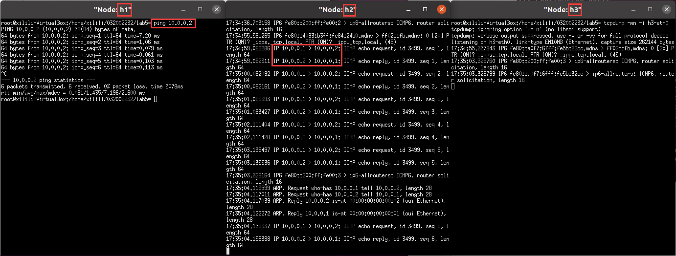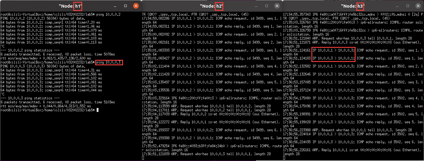 h1 ping h3
