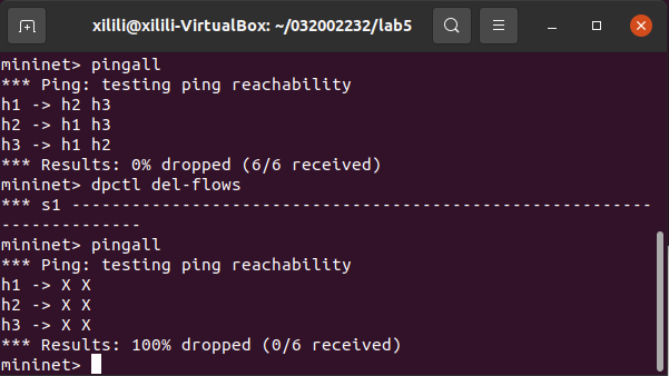 1、重新搭建(一)的拓扑,此时交换机内无流表规则,拓扑内主机互不相通