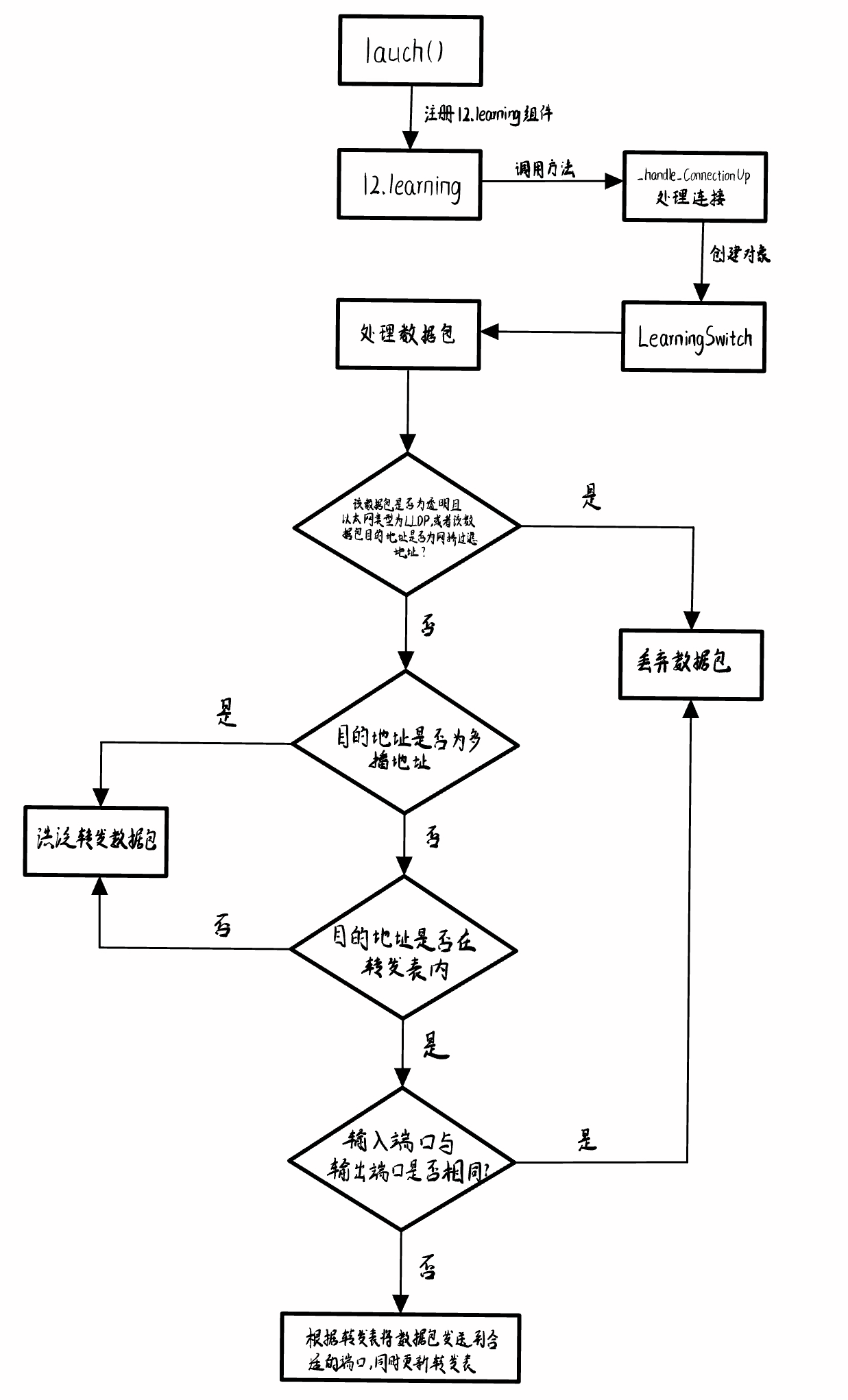 2、阅读L2_learning模块代码,画出程序流程图