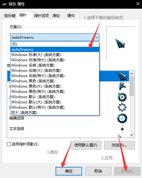 使用:以JadeDreams鼠标样式作为案例,解压文件后,进入JadeDreams文件夹下,找到 !右键安装.inf 文件,击此文件找到安装项。弹出: