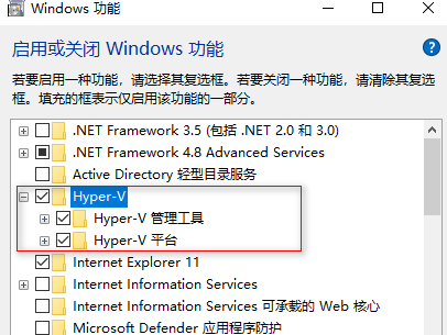 控制面板\程序\程序和功能\启用或关闭Windows功能 ----> 开启 Hyper-V