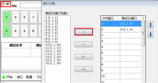 选择要用的测试窗口打勾,然后选中端口移动到 右边,可以移进移出
