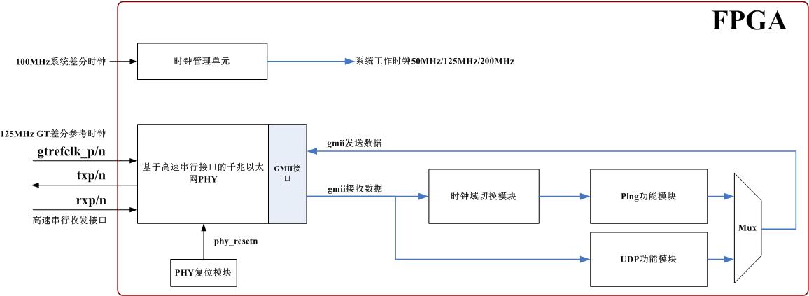 gmii接收数据时钟域切换,ping功能模块收发数据要求在同一个时钟域; |