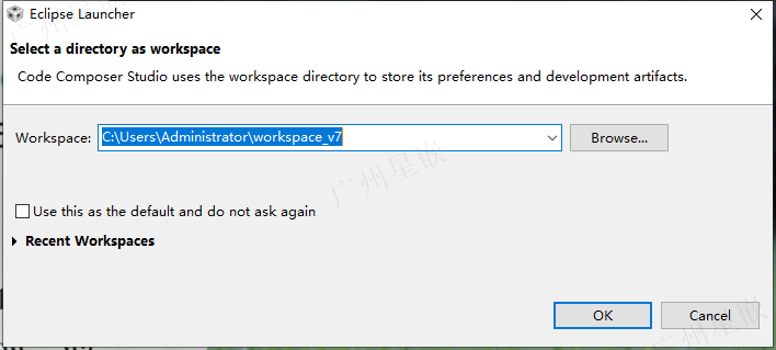 CCS设置工作空间时,选择默认即可:
