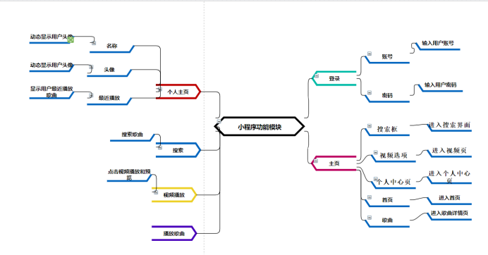 说明:本小程序分为三个部分,用户在登录后方可使用小程序的功能,可以进行音乐的播放,视频的播放,进入个人中心页看最近播放的歌曲等。