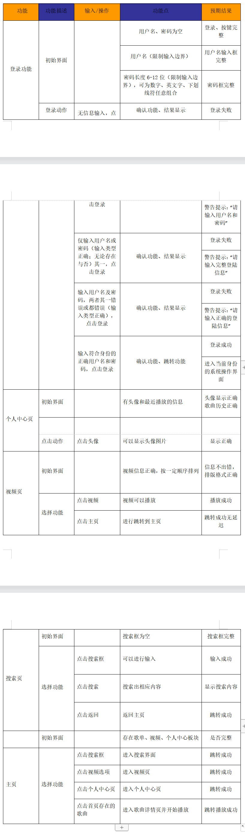 | 7 | 编码+测试+项目管理同步推进,发布Alpha版本 | 2020-06-20 | 全员 | 完成项目的核心功能开发,包括搜索模块、个人中心模块、视频模块、歌单模块、并测试 |