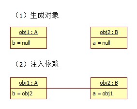 (3)对象被用来组装成更大的对象。对象之间可能有复杂的依赖关系,使它们保持唯一可以简化组装过程。Spring Framework托管的对象即被默认为单例模式。下面是单例对象的组装过程示意图。