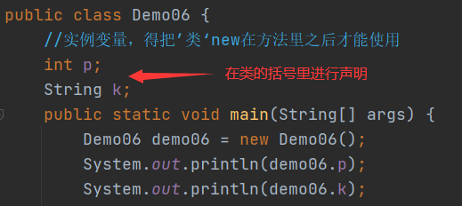 - 所有写在类里的变量,都会作用于方法,只不过被使用的方式可能会有些不同,比如下列的实例变量
