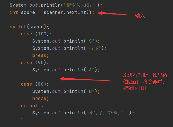 我们还要输入break,来防止穿透现象, 也就是我们假设有很多case 1,2,3 ...