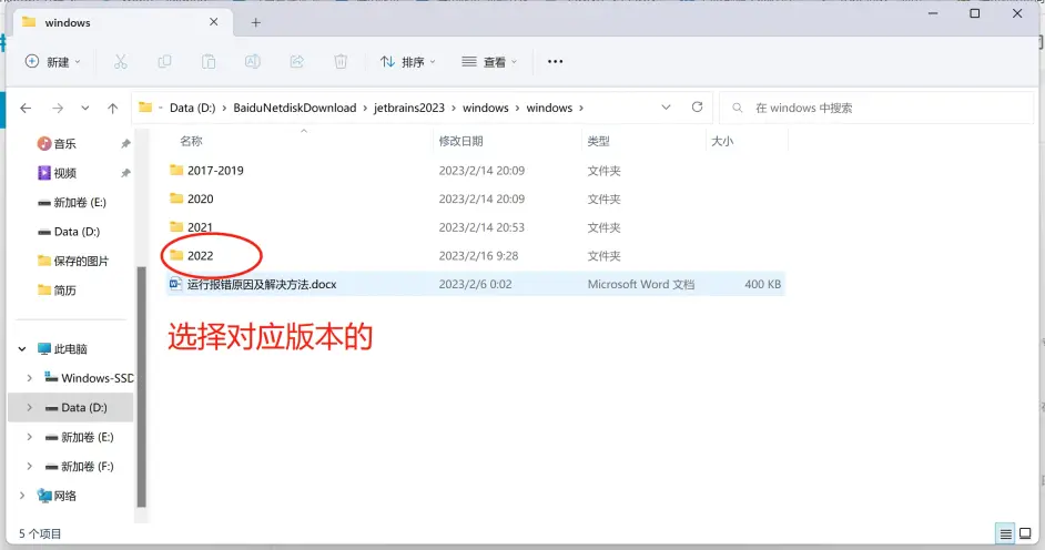 打开对应版本的文件夹,我用的是最新的,所以打开2022
