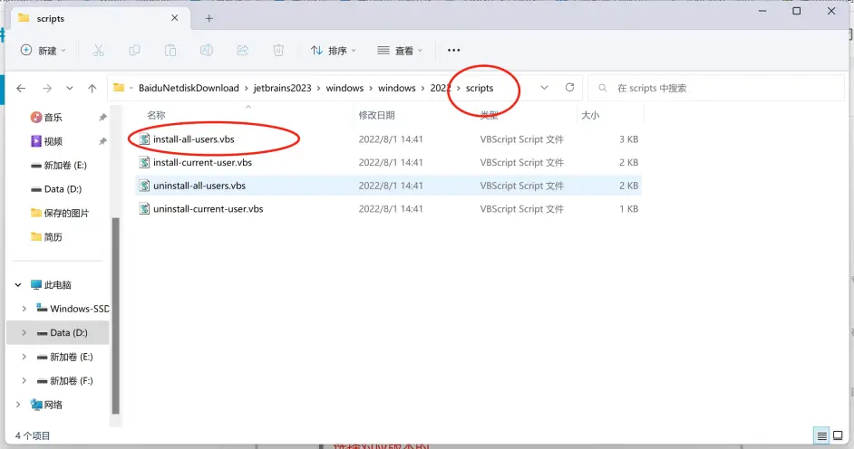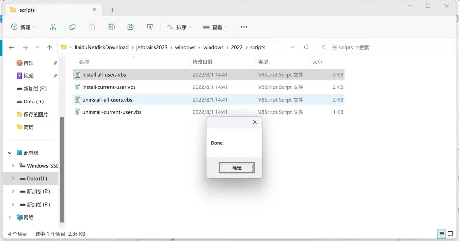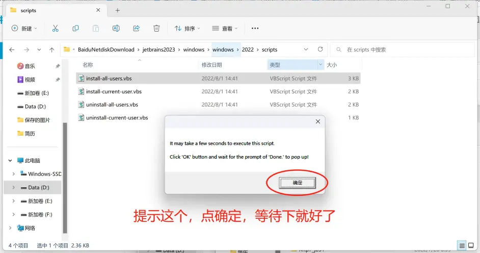 打开当前目录scripts目录,双击install-all-users.vbs