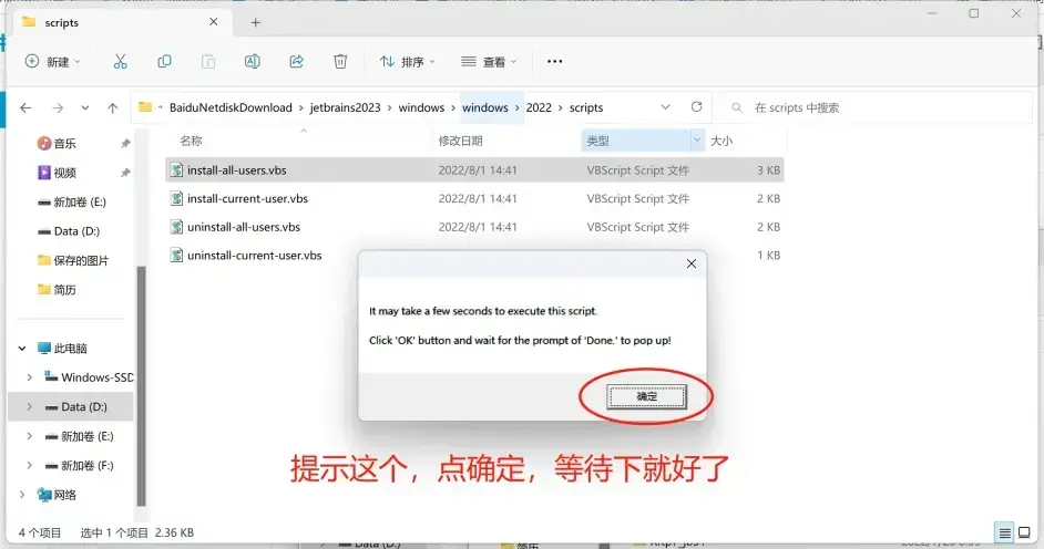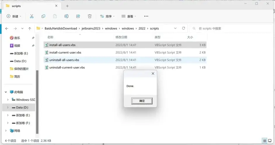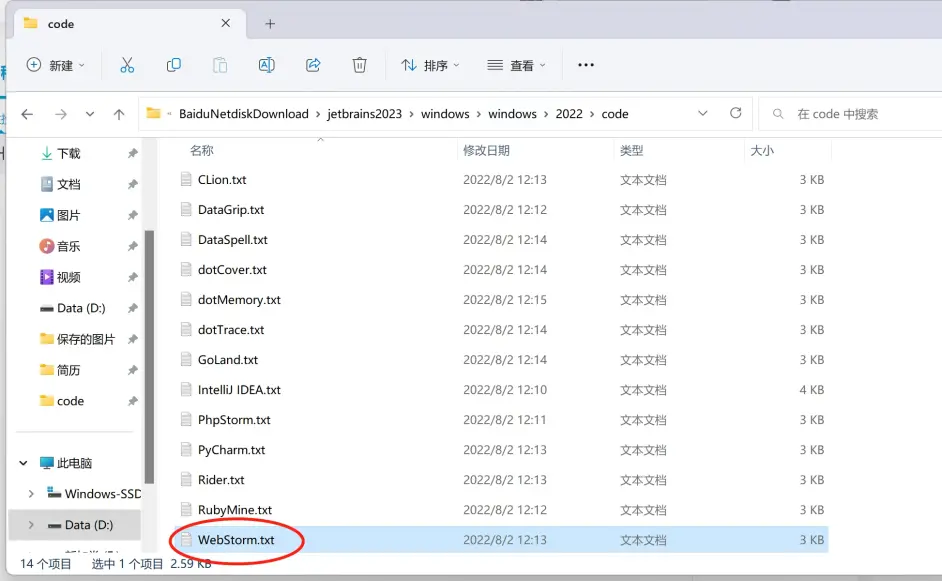 因为这个激活包是可以适用jetbrains全家桶的,所以里面生成了对应软件名的txt文件,只需选择当前正在操作的软件即可。