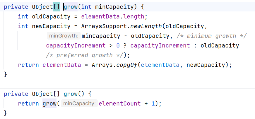 可以与ArrayList 中的grow() 方法比较, 可以发现大同小异, 但是ArrayList 固定的扩容