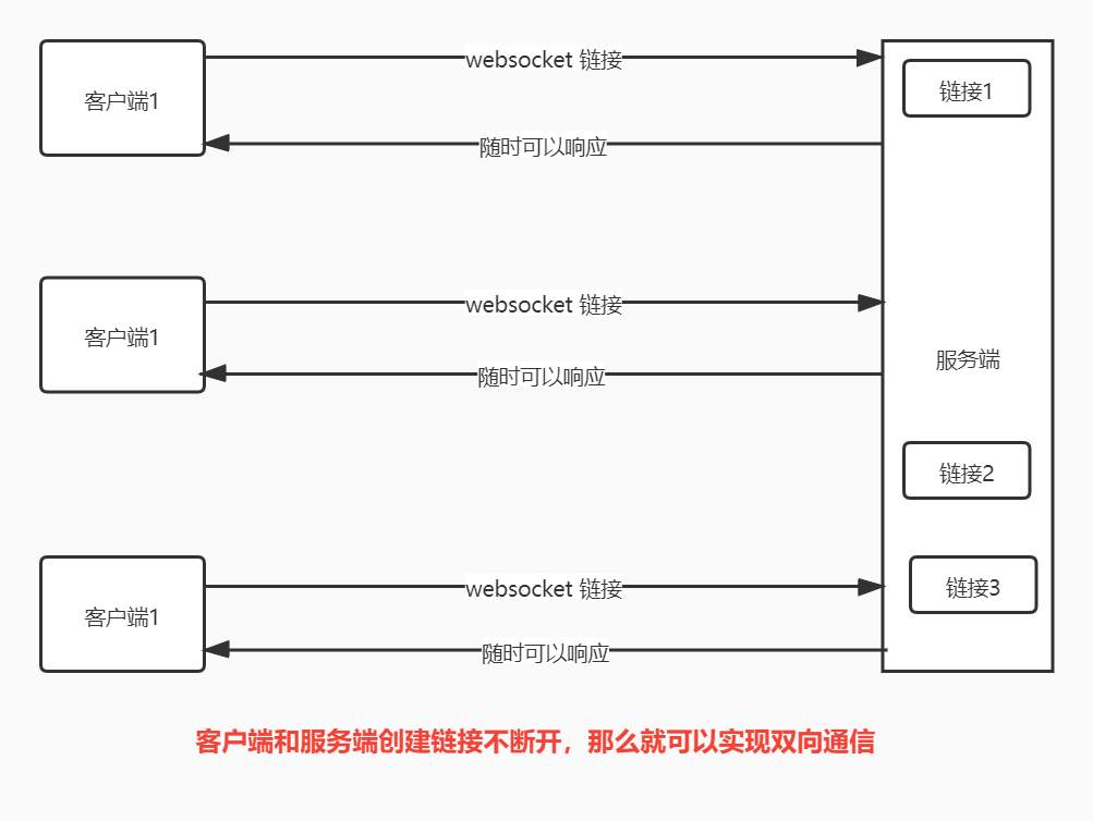 客户端和服务端创建链接不断开,那么就可以实现双向通信