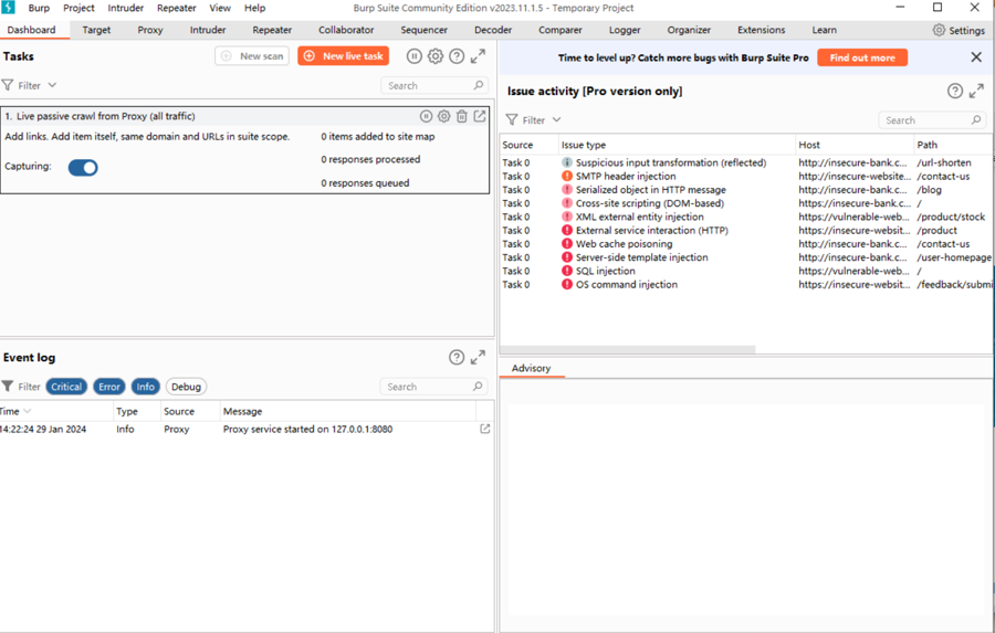 - Scanner[仅限专业版]——是一个高级的工具,执行后,它能自动地发现web 应用程序的安全漏洞。
