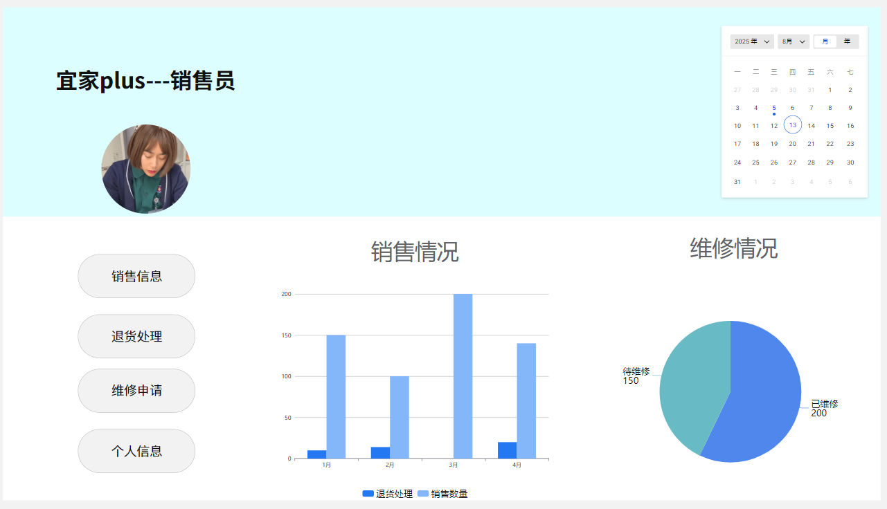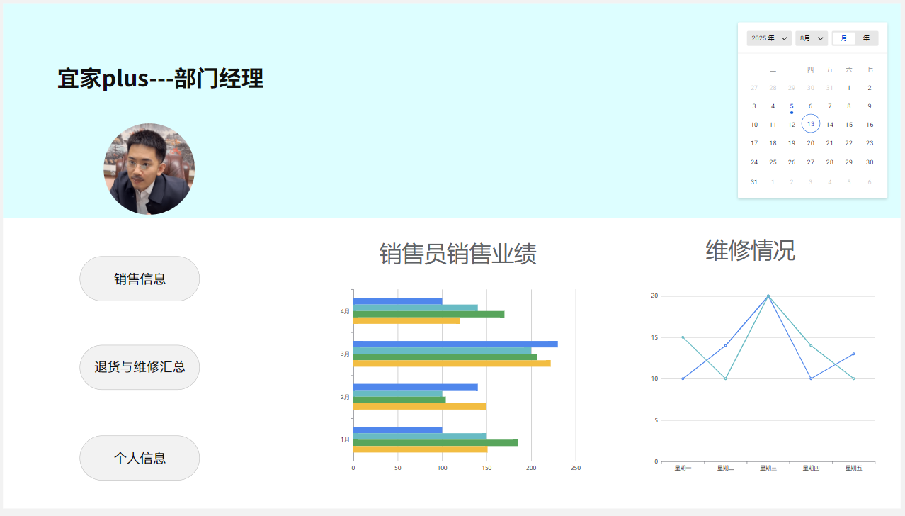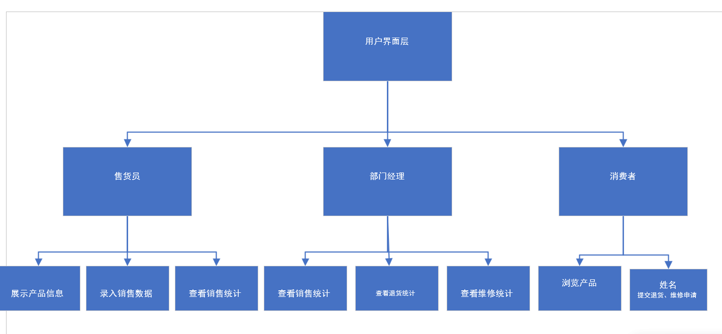 部门经理:可以全面查看售货员的销售业绩、家电产品的退货情况以及维修情况。