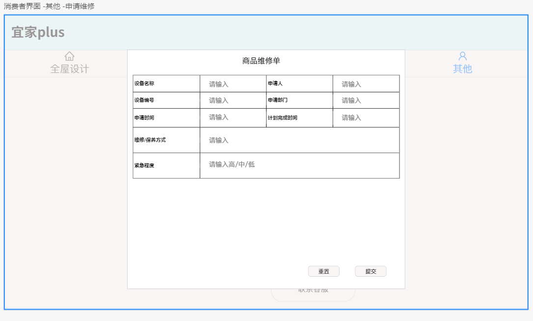 维修管理:消费者能提交维修申请,系统要记录家电故障描述等;同时要能展示维修进度和结果。