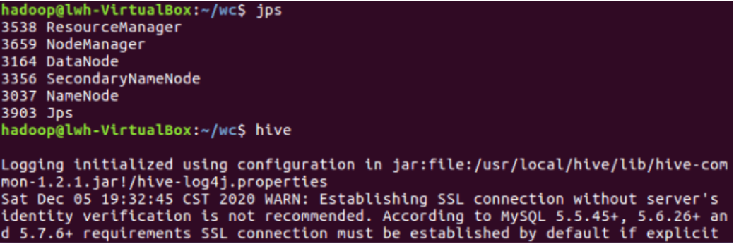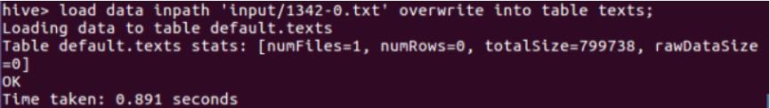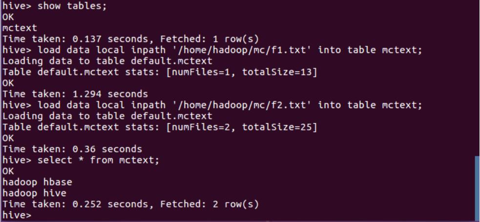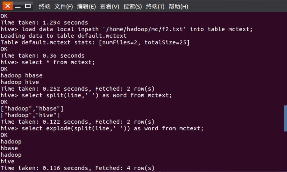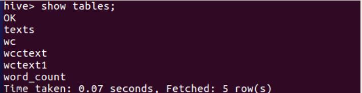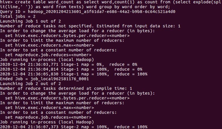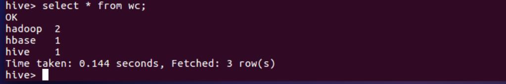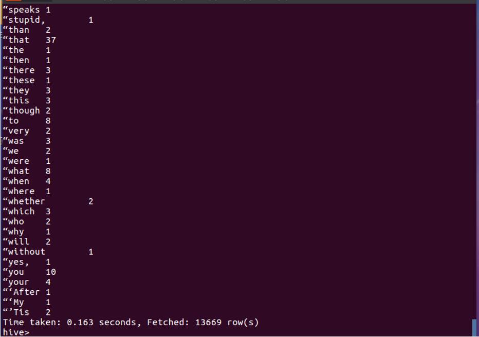 5.hql语句进行词频统计交将结果保存到结果表中: