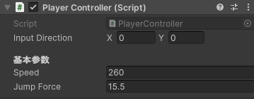 在创建的脚本中,可以调整Jump Force的值,调整跳跃的力,数值越大,跳的越高