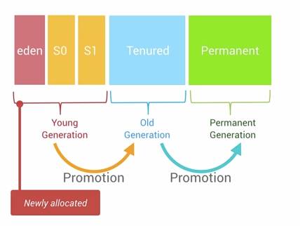 其中Young Generation区域存放的是最近被创建对象,此区域最大的特点就是创建的快,被销毁的也很快。当对象在Young Generation区域停留的时间到达一定程度的时候,它就会被移动到Old Generation区域中,同理,最后他将会被移动到Permanent Generation区域中。