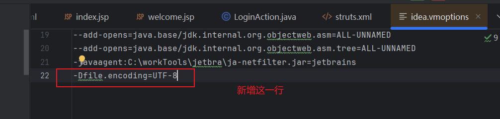新增内容:-Dfile.encoding=UTF-8
