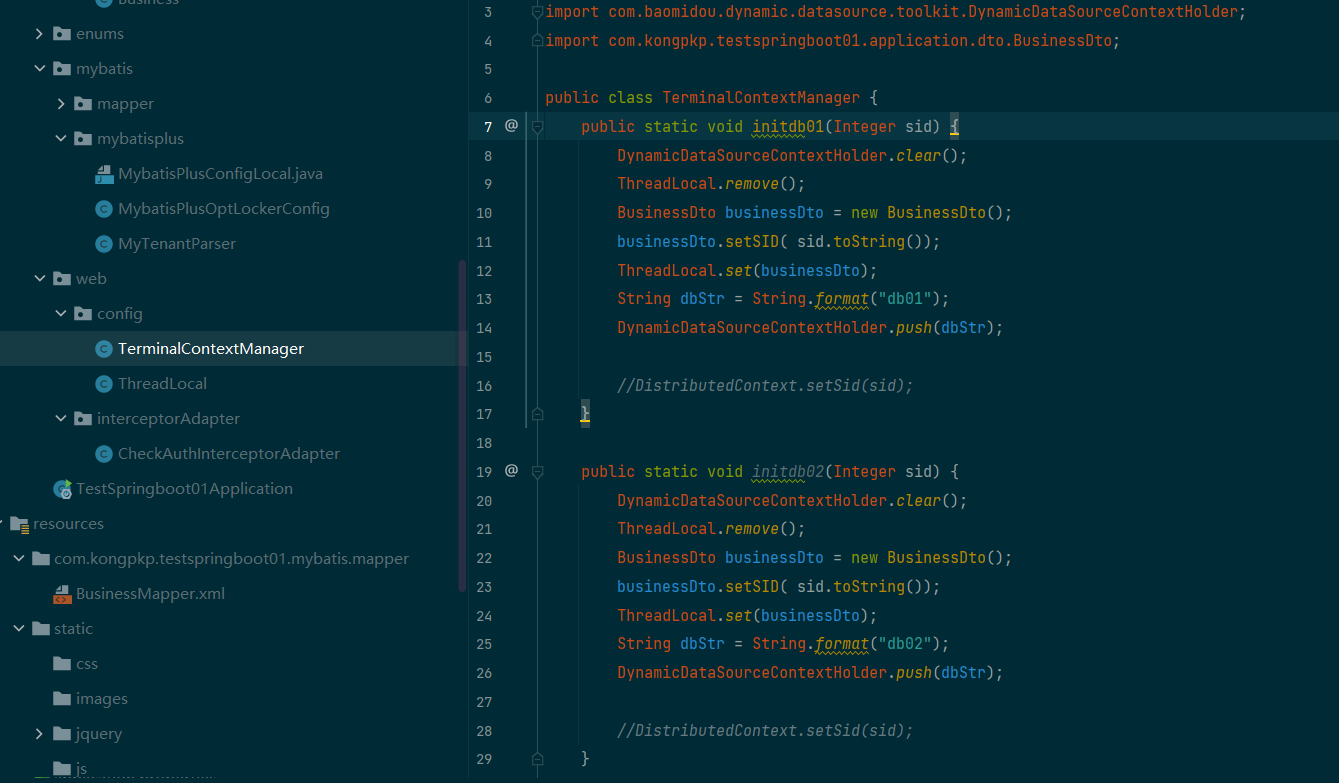 2、DynamicDataSourceContextHolder实现动态切换数据源