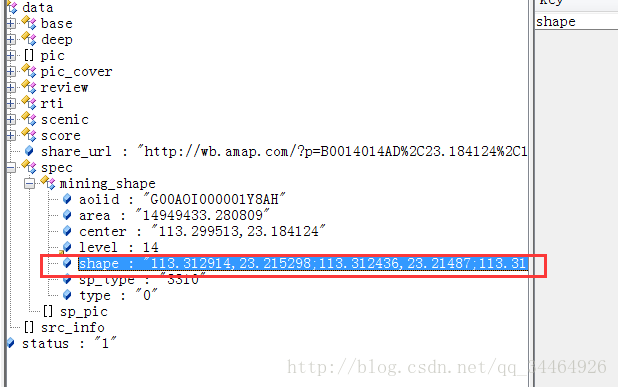 标红的shape数据即为边界坐标数据(一个多边形的边界其实是由多个点围成的)。