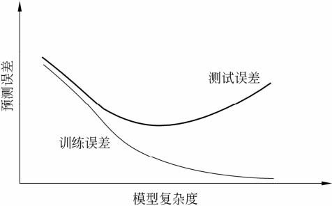 当模型的复杂度增大时,训练误差会逐渐减小并趋向于0;而测试误差会先减小,达到最小值后又增大。当选择的模型复杂度过大时,过拟合现象就会发生。因此在学习时要选择复杂度适当的模型,以达到使测试误差最小的学习目的。