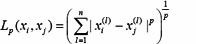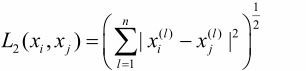 这里p≥1。当p=2时,称为欧氏距离(Euclidean distance),即: