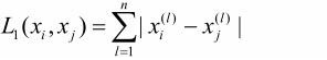 当p=1时,称为曼哈顿距离(Manhattan distance),即: