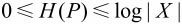 式中,|X|是X的取值个数,当且仅当X的分布是均匀分布时右边的等号成立。这就是说,当X服从均匀分布时,熵最大。