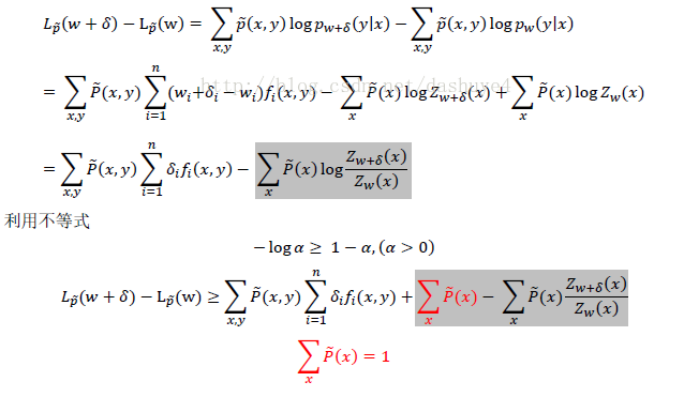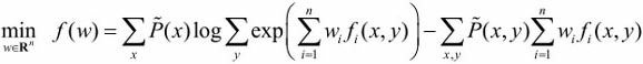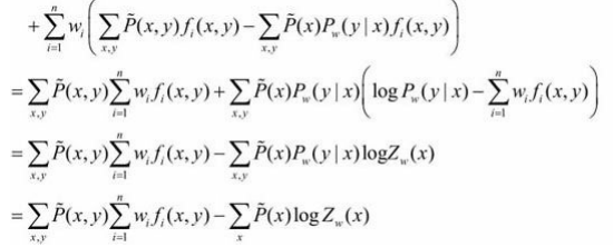 ,所以最大熵模型的学习问题就转换为具体求解对数似然函数极大化或对偶函数极大化的问题。