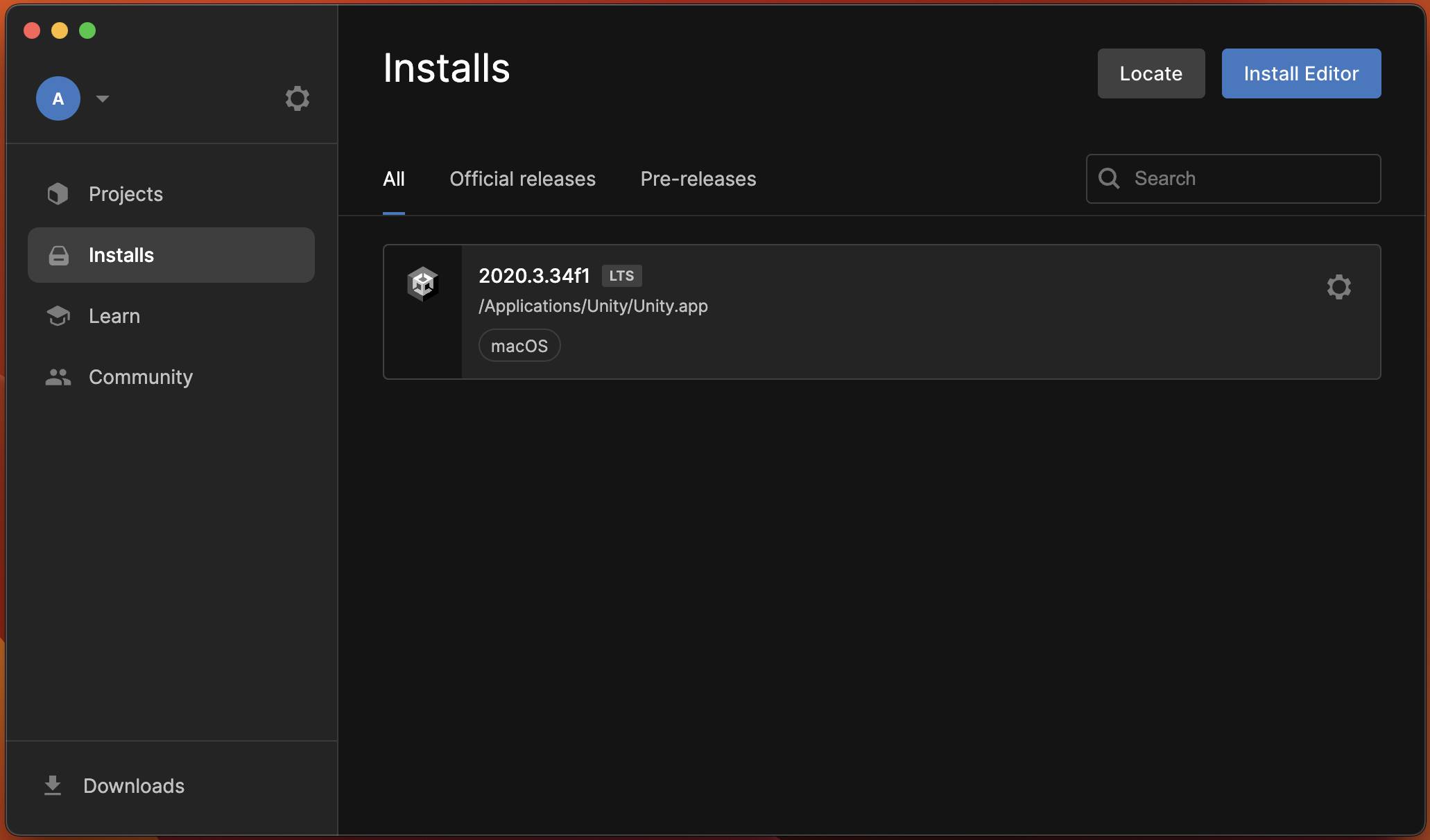 本文演示的是如何在 Mac 下安装 Unity 2020.3 版本