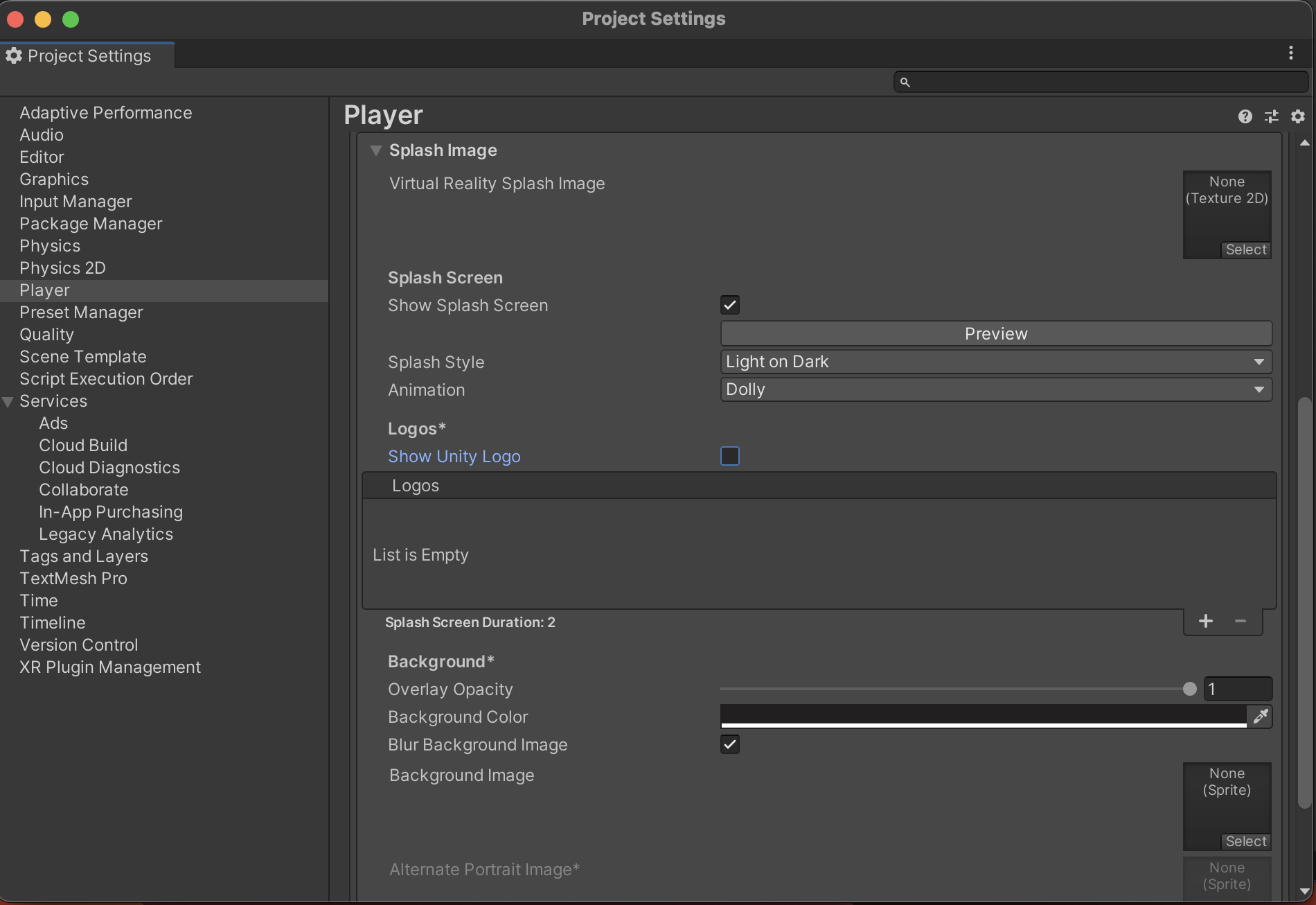8. 打开Unity 的导出设置,已经去掉 Unity 的 Logo 了